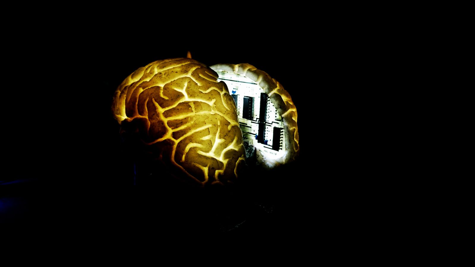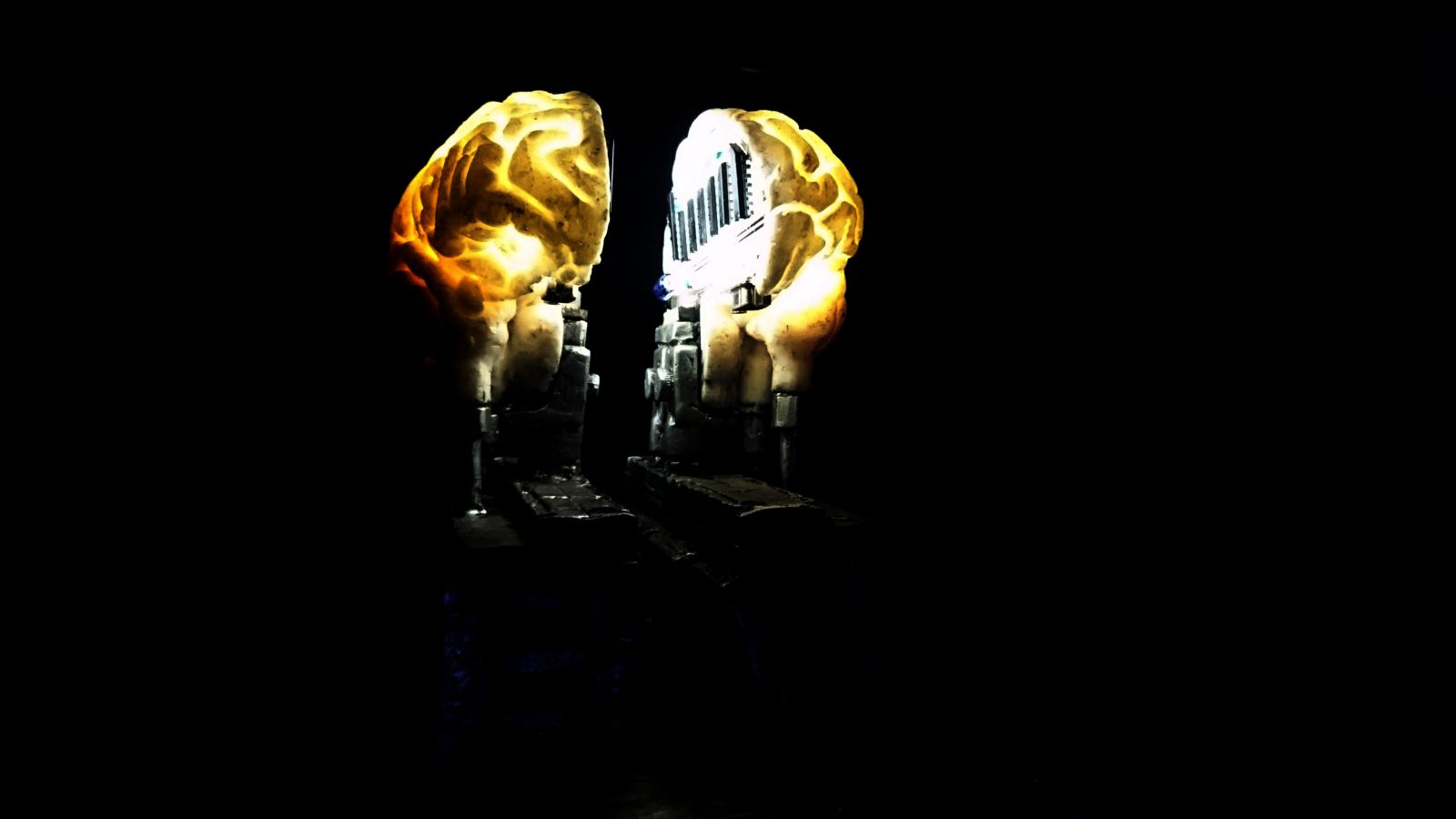 Human brains integrated with electronic systems as a symbol of future integration of man and machine ( Transhumanism ) and our run towards a technological singularity. (the moment the machine is smarter than us)