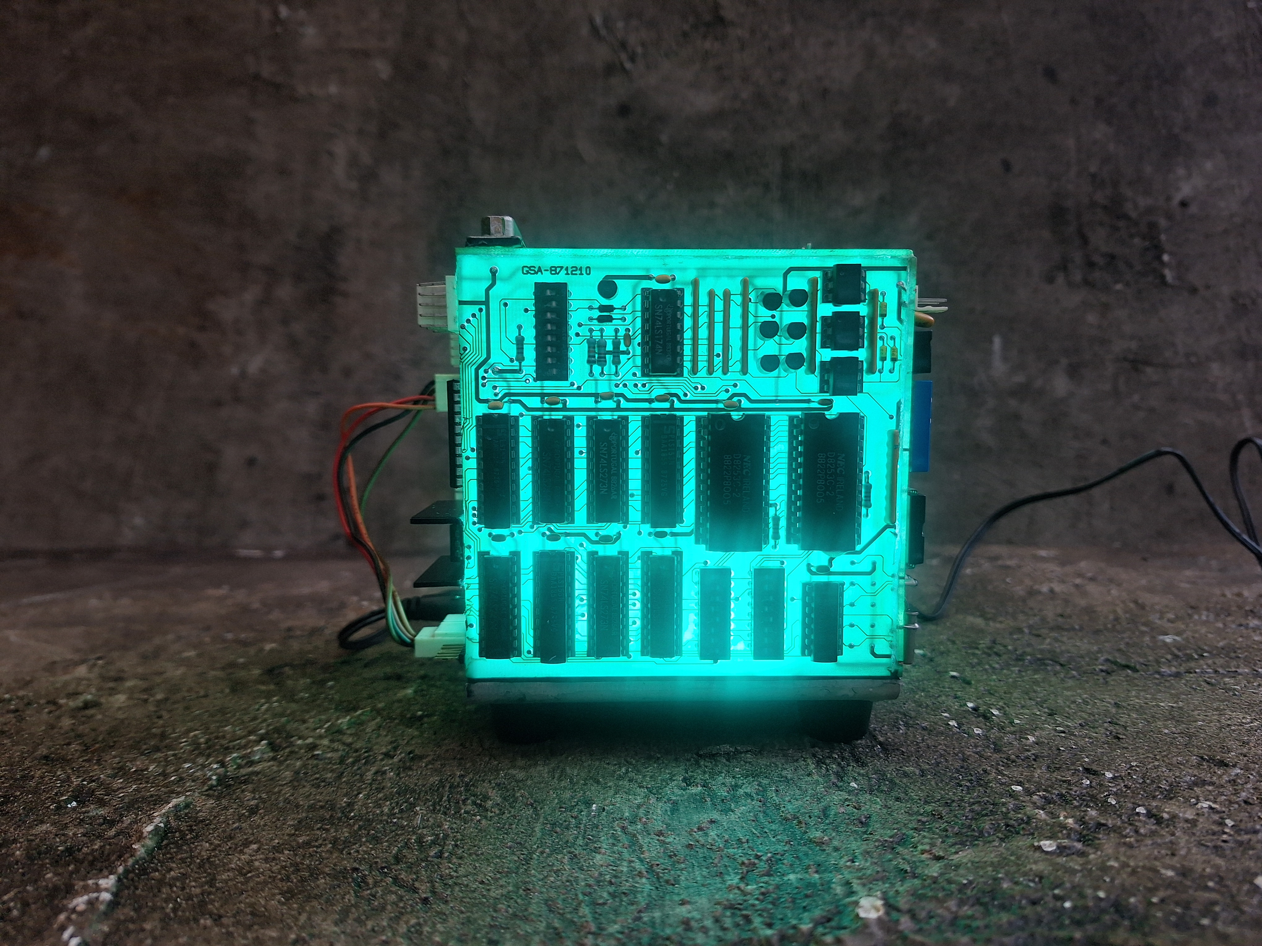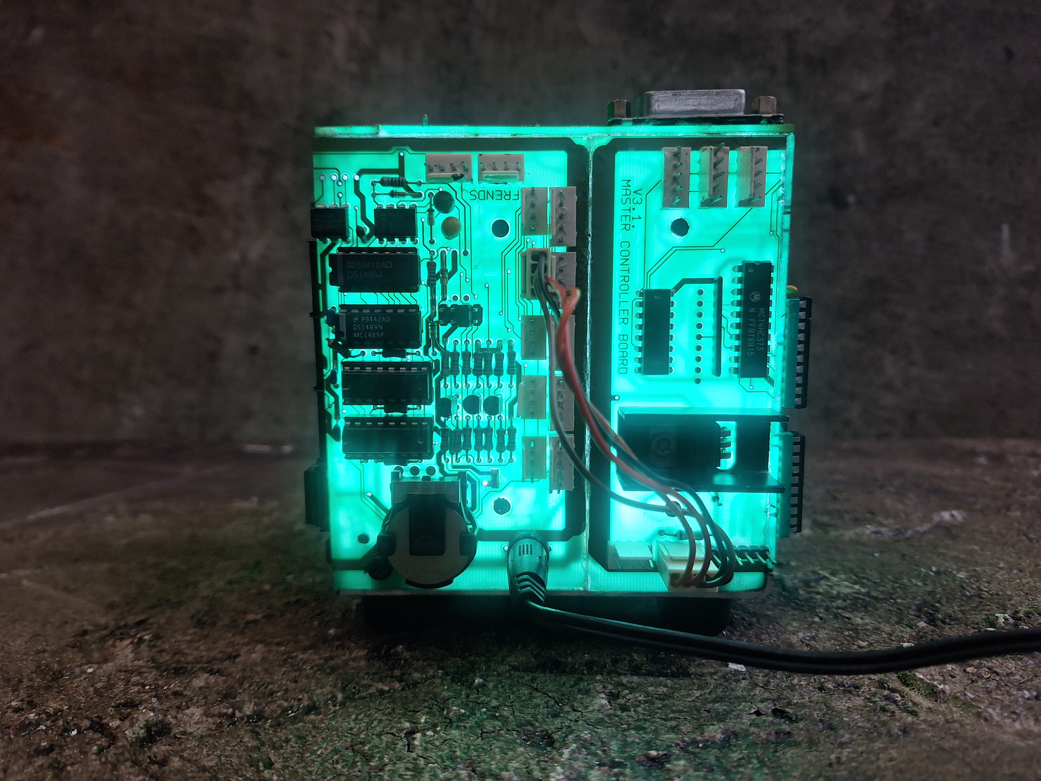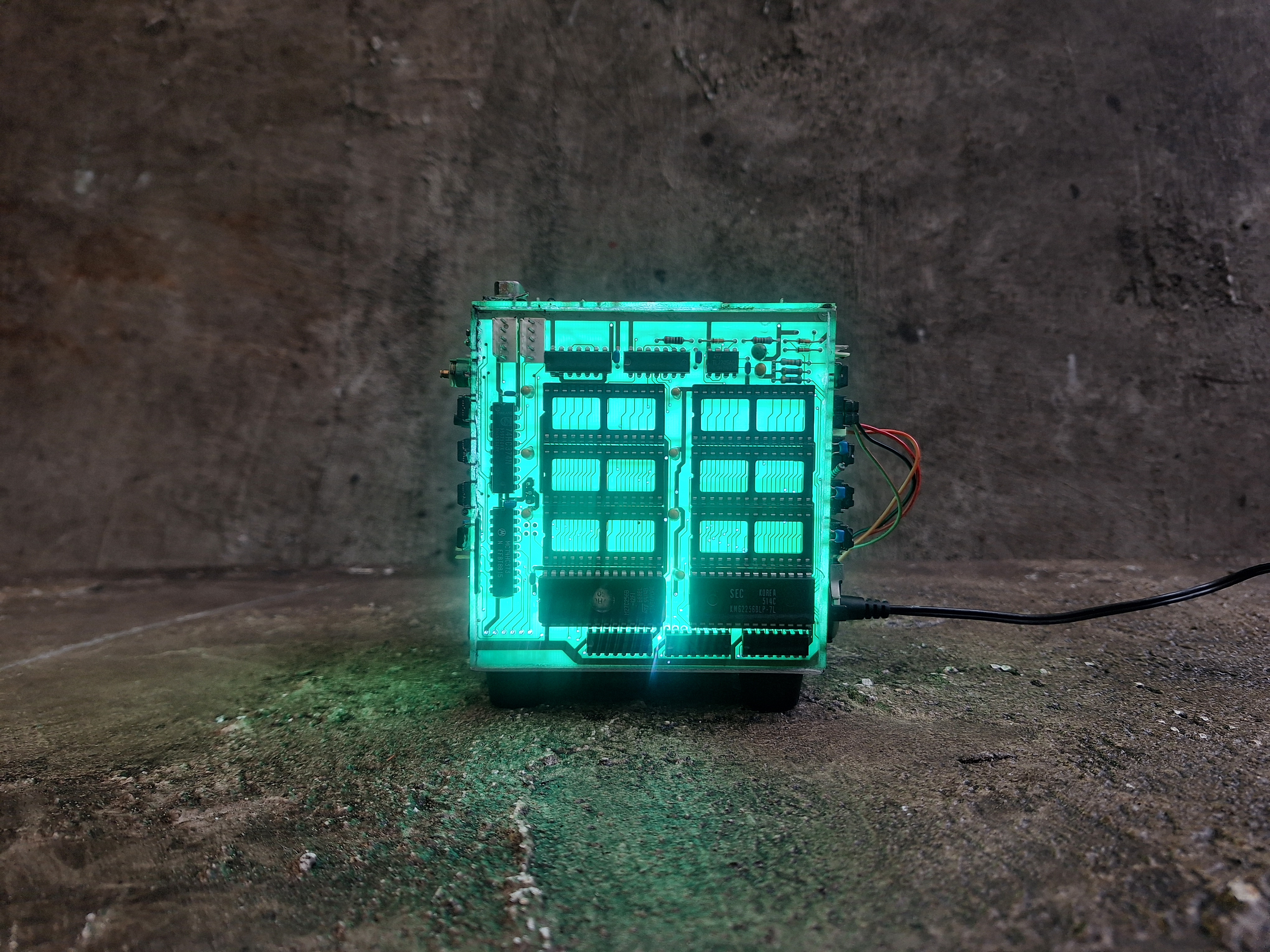Cube made of recycled circuitboards and led light